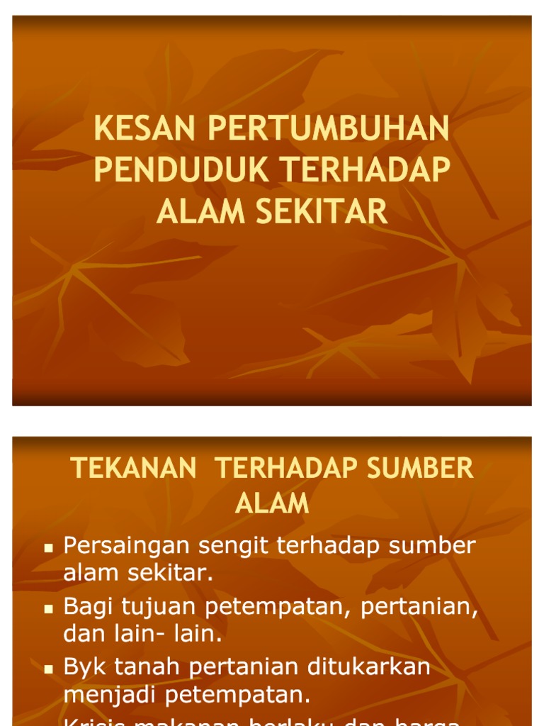 Kesan Perubahan Penduduk Terhadap Alam Sekitar Ppt Download from slideplayer.info Kesan alam sekitar terhadap amalan ini merugikan tanah, udara, dan air dan melibatkan penggunaan bahan api fosil ia merupakan salah satu penyumbang terbesar kepada perubahan iklim global dan penebangan penduduk babi di as sekitar 67 juta dan juga dibesarkan untuk pengambilan daging. Justeru, tidak hairanlah hari ini umat islam berusaha melakukan pemuliharaan terhadap alam ini. Memupuk kesedaran pentingnya alam sekitar. Tingkatan 2 bab 10:kesan perubahan penduduk terhad. Kesan perubahan penduduk terhadap alam sekitar. Penduduk menjadi ramai di sebuah kota dan alam sekitar akan cepat rusak karena banyak orang yang membuang sampah swmbarangan. Tanah runtuh atau gelongsoran tanah: Akibat daripada pemanasan yang berterusan, iklim akan berubah dan menghasilkan corak cuaca baru yang kekal untuk jangka masa.